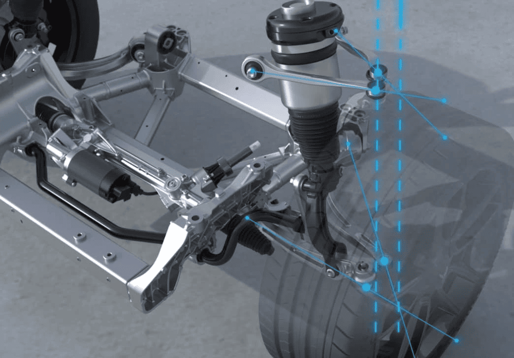 Old tomonda ikki richagli sharli tayanchli osma va orqada N-simon richagli ko‘p richagli mustaqil osmaga ega to‘liq alyuminiy yengil shassi.